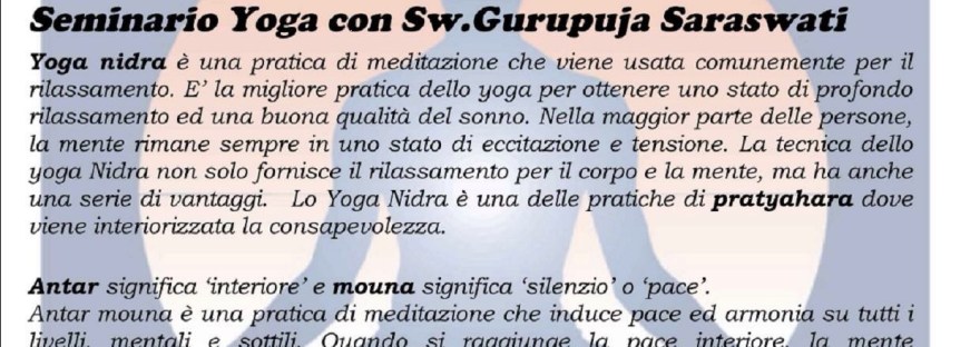 SEMINARIO YOGA CON SW.GURUPUJA SARASWATISeminario per gli iscritti alla formazione Insegnanti e Istruttori Yoga