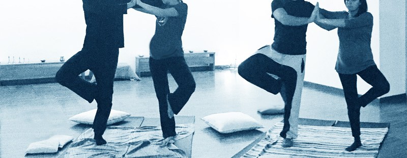 Lezione speciale di yoga in gravidanza in cui sono invitati i compagni per una lezione in coppia. Pratiche di osservazione, contatto e ascolto che vi possono accompagnare nella gestazione e oltre.