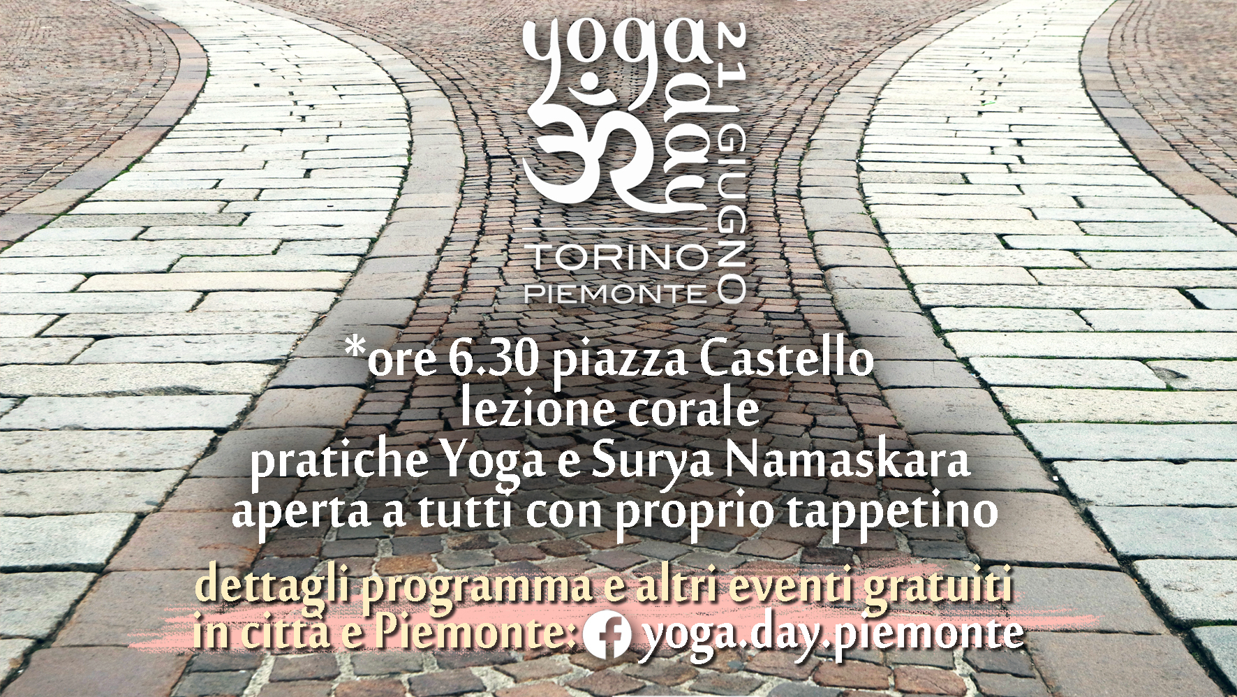 Quest’anno a Torino si sono aggregati insegnanti di diversi centri e tradizioni per costruire insieme un programma condiviso, composto da un momento corale di pratiche yoga condotto da più insegnanti: all’alba dalle 6,30 in Piazza Castello.
