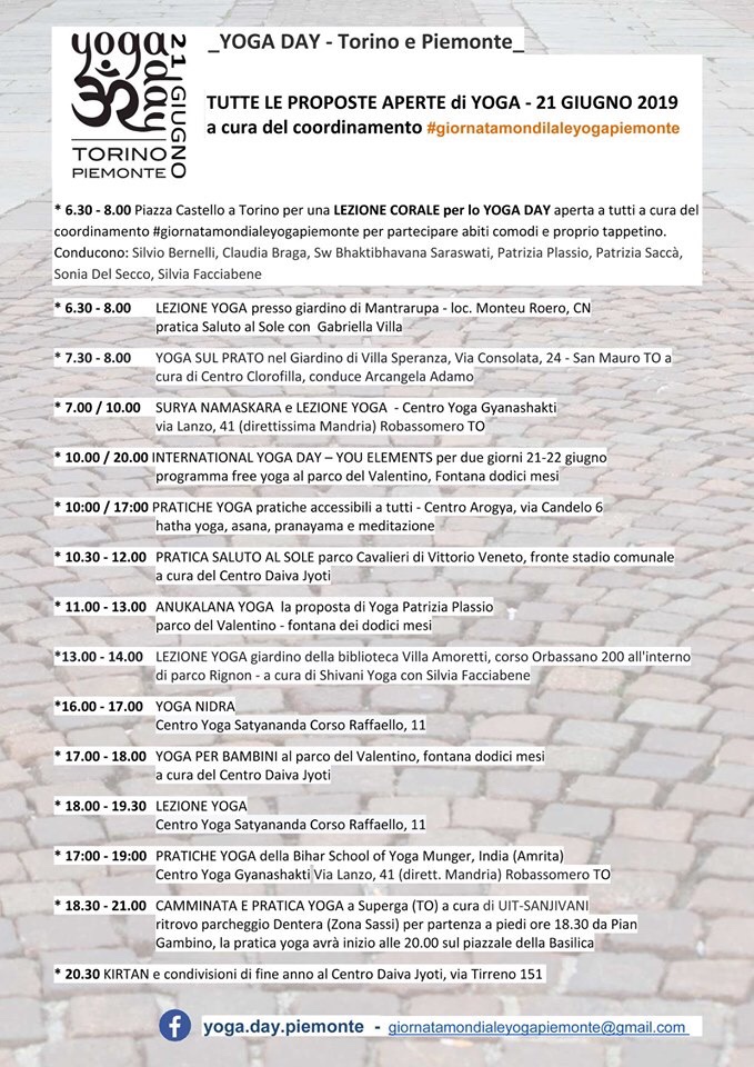Programma completo per la #giornatamondialeyogapiemonte :