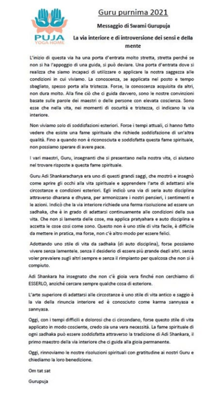 In occasione di Guru purnima 2021, con gratitudine verso Swami Gurupuja, allego il suo prezioso messaggio; che possa portare luce nei cuori di tutti.