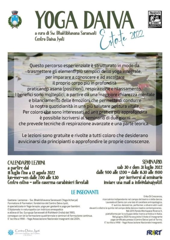 Ringraziando il Comune di Chiaromonte PZ e la Proloco Le Torri di Chiaromonte, proseguiamo con lo YOGA ESTATE 2022