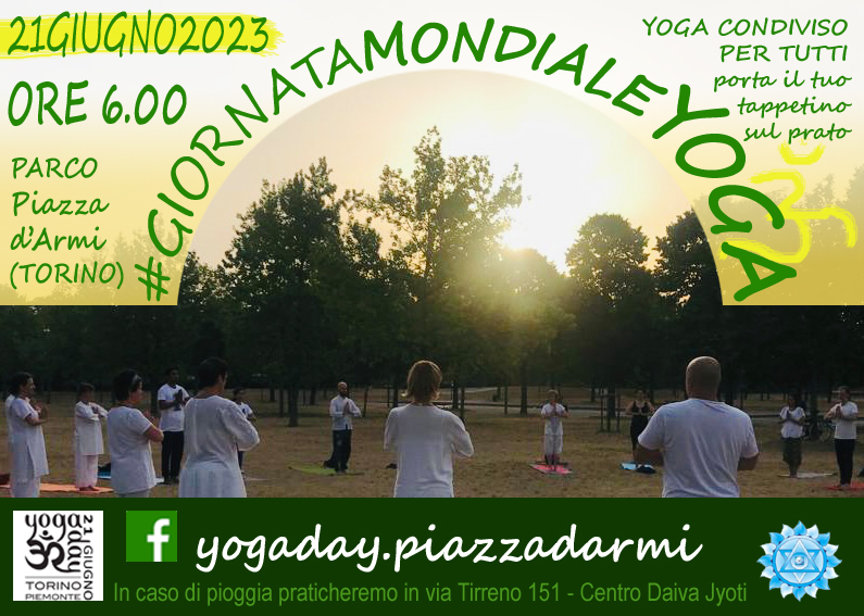 L’annuale appuntamento per la giornata mondiale dello yoga sarà celebrato anche quest’anno dalle ore 6.00 con una pratica condivisa da alcuni insegnati in Piazza d’Armi (di fronte allo stadio comunale).