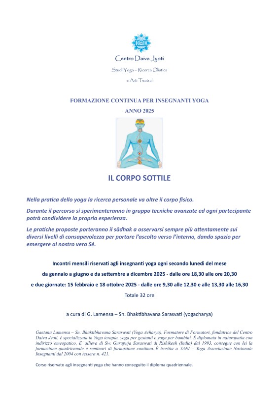 UncategorizedFORMAZIONE CONTINUA PER INSEGNANTI YOGA 2025 10/01/2025 Bhaktibhavana Saraswati Condividi: Fai clic per condividere su X (Si apre in una nuova finestra) X Fai clic per condividere su Facebook (Si apre in una nuova finestra) Facebook Altro Fai clic qui per stampare (Si apre in una nuova finestra) Stampa Fai clic per condividere su WhatsApp (Si apre in una nuova finestra) WhatsApp Fai clic per inviare un link a un amico via e-mail (Si apre in una nuova finestra) E-mail Mi piace Caricamento... Correlati