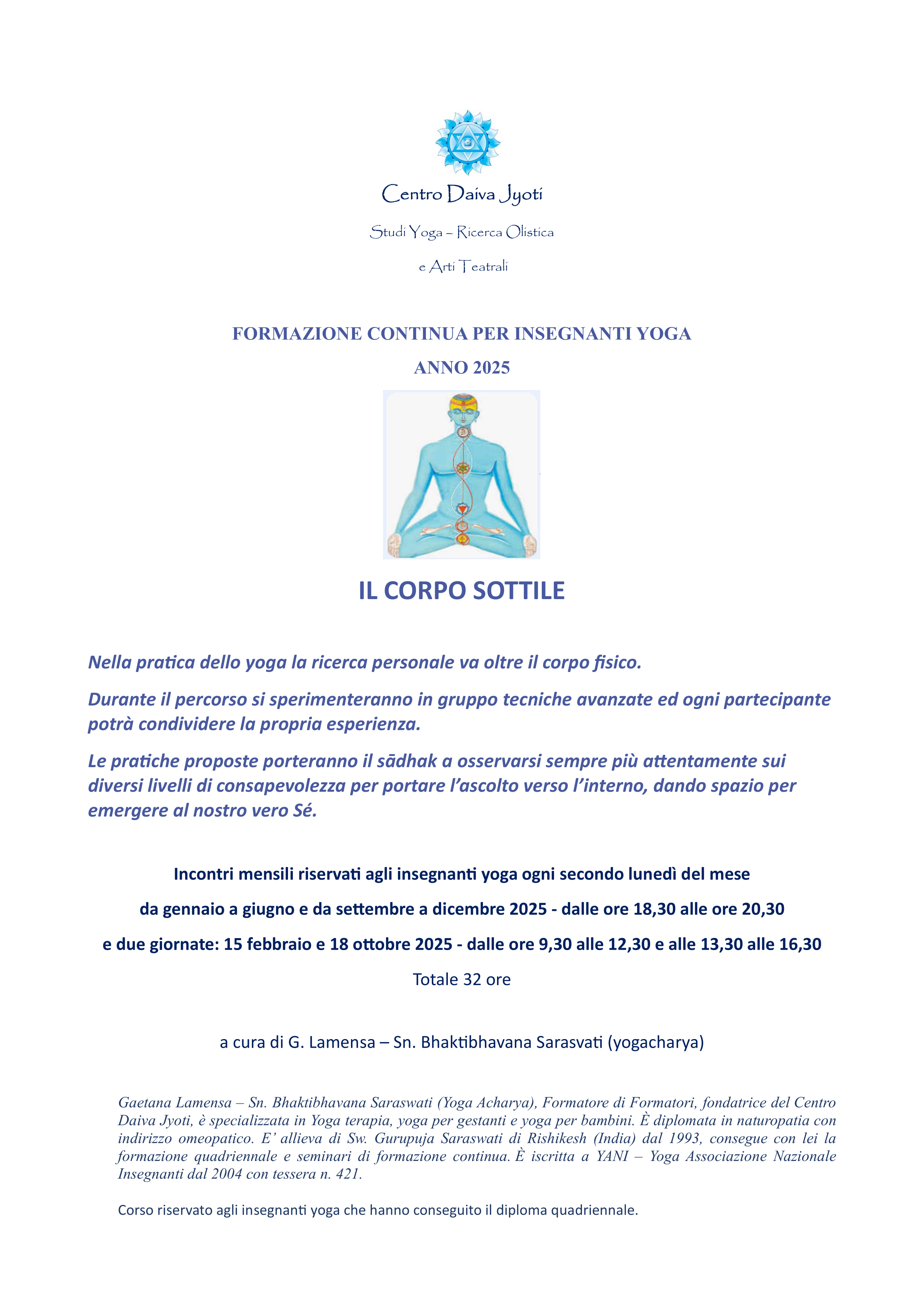 Nel 2025 si propone un viaggio interiore, sperimentando tecniche avanzate dello yoga che ci conducono a una maggiore consapevolezza. FORM_CONT_DJ2025_LOCANDINA